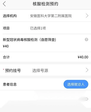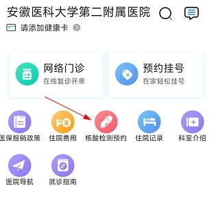 1、打开安医大二附院,点击“核酸检测预约”。