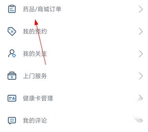 1、进入安徽医科大学第二附属医院的个人中心页面,点击“药品/商城订单”选项。