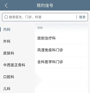 2、选择要预约的门诊。