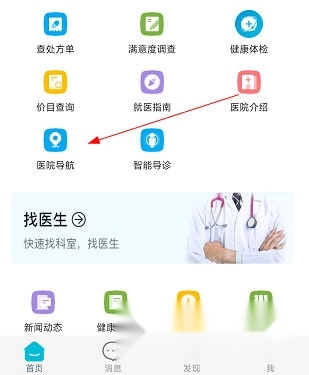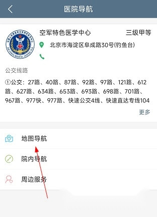 1、打开空军特色医学中心,点击“医院导航”。