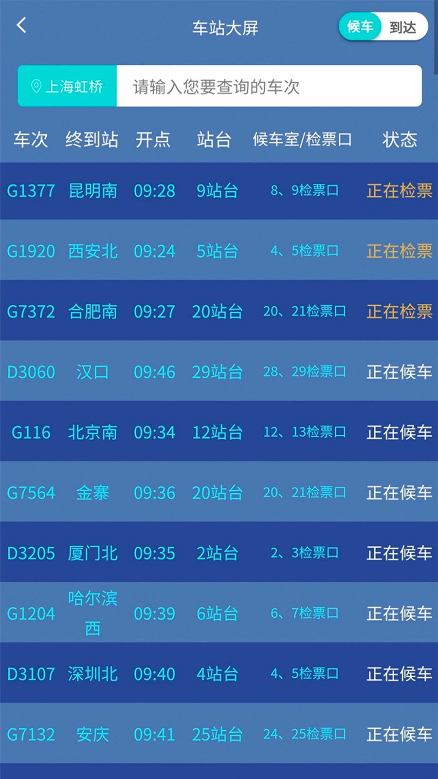 【候车信息】涵盖“候车室、检票口、开检、停检”等信息的查询服务。