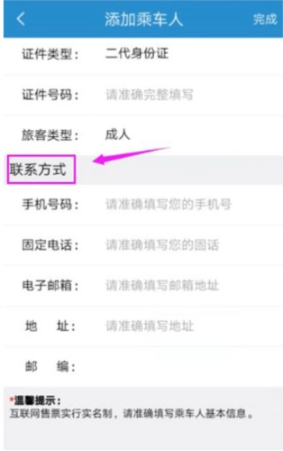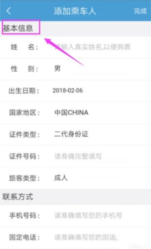 7、最后,填写完毕后,点击“完成”按钮,这样就能添加新的乘车人了。