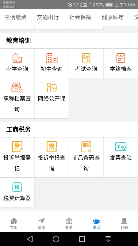 生活缴费,线上缴纳话费、水费、电费、物业费;