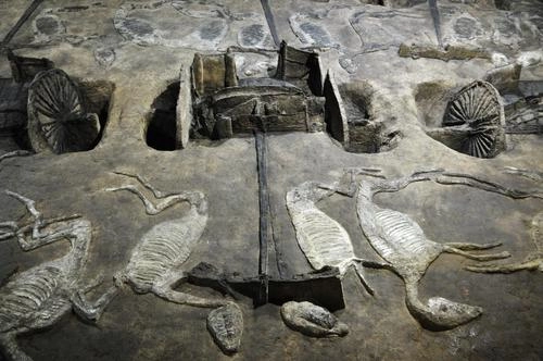 3、楚王车马阵景区地处湖北省荆州市川店镇张场村,与楚纪南城相距仅26公里,离荆州市区(荆州古城)大约35公里。作为我国目前考古发掘中发现的等级最高、规模最大、分布最完整且遗迹最丰富的楚国高等级王陵及车马阵遗址,楚王车马阵不仅是春秋战国时期楚文化最高水平的卓越体现,还是楚纪南城(郢都)大型古文化遗址的关键构成部分。著名词作家乔羽先生将其誉为“北有兵马俑,南有车马阵”,中国考古学会理事长张忠培先生也对其赞叹有加,称其“中国仅有,天下第一”。