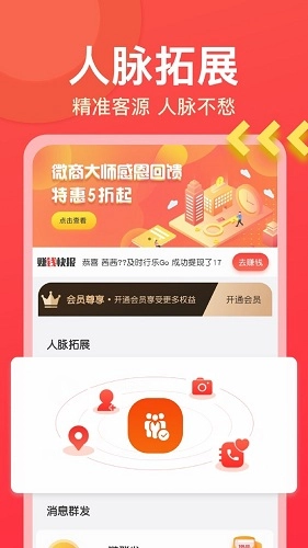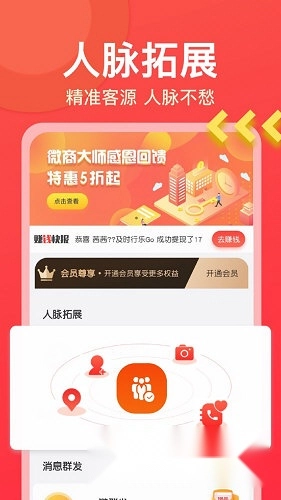 实时传递价值资讯,助您轻松开启微商之路,快速获取客源,让您的商圈迅速壮大,8亿微信用户就是您拓展商圈的坚实基础。