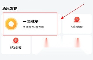 1、打开软件找到消息发送一栏,点击“一键群发”。