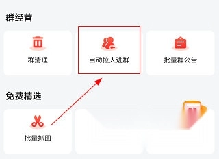 1、打开软件后,找到“群经营”板块,点击其中的“自动拉人进群”功能。