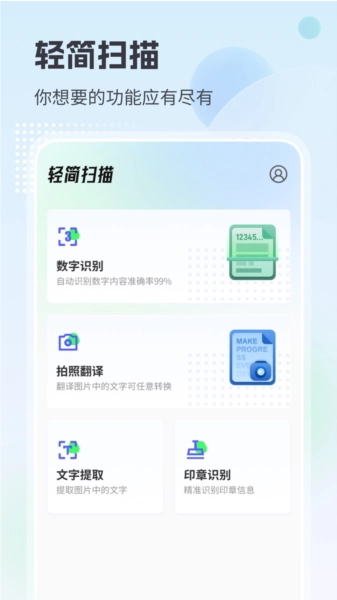轻简扫描是一款创新的移动端文字扫描工具,整合了多种实用功能,为用户打造了全新的文字处理方案。它拥有强大的拍照识别和即时翻译功能,能够简化工作流程、提高效率,还可以直接在设备端完成文字提取与编辑,支持一键导出,让信息处理更加轻松高效。对于追求高效便捷文字扫描体验的用户来说,轻简扫描无疑是理想的选择。