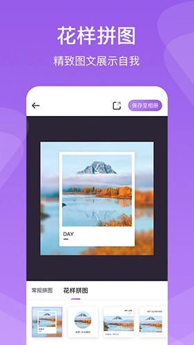 预览平台的多彩效果,能帮您轻松打造专属照片墙。懒人拼图操作简单,让拼图不再复杂,您只需轻松输入文字信息,就能展现多彩生活。软件还有文艺范的拼图模式,让照片与文字融为一体,呈现个性生活信息。选择模板快速使用,自由整理拼图内容,是您最佳的拼图选择。