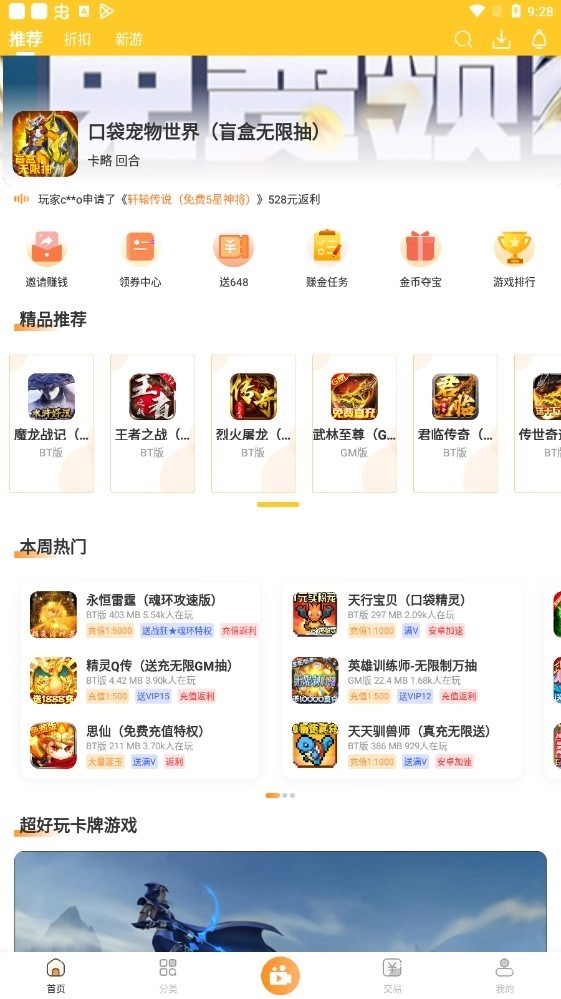5、本周热门:每周实时更新并推荐当下热门内容,帮助玩家发现更多新游戏。