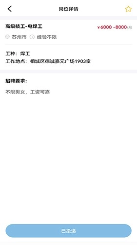 长赋技工是一款专为技工群体打造的优质求职招聘软件,能让技工们的求职过程更便捷、更简单。平台上的工作岗位信息十分详尽且真实,清晰列出了岗位要求、对工人的技术需求、具体工作内容以及岗位福利待遇等各项细节。