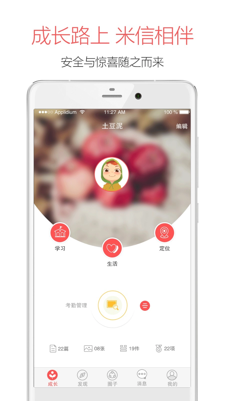 【家校沟通无距离】家长能够随时随地通过米信了解孩子在学校的情况,随时查看学校的相关通知、孩子的到课出勤率、学习成绩以及作业情况等。