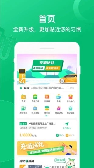 卓越绿园是浙江卓越绿园网络科技有限公司推出的充电服务应用,用户借助该软件能够实时查找周边充电桩,完成充电充值操作,还可获取精准的导航指引前往目的地,随时查看车辆充电进度,此外平台还提供便利店、商城的在线购物服务,全方位满足用户的个性化使用需求,助力用户轻松出行。