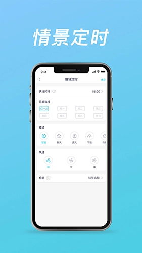 4、情景定时功能:呼博士后续可根据自身生活场景设置相应模式,新风机设备便能依照设定的情景模式开展空气净化工作。