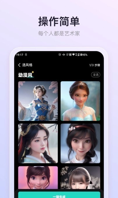 3、体验绘画美术带来的乐趣,一键生成作品,欣赏起来也十分便捷哦。