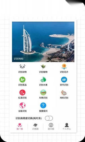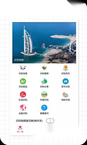 物品识别:请根据拍摄的物品选择对应的识别类型,软件将依据您拍摄的物品自动完成识别操作。