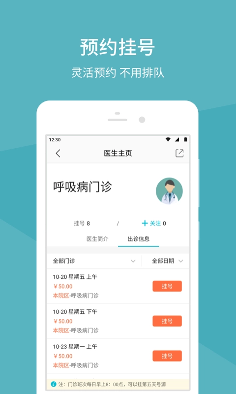 2、了解出诊安排:若有指定想挂号的医生,可在此提前查看该医生的出诊日程安排。