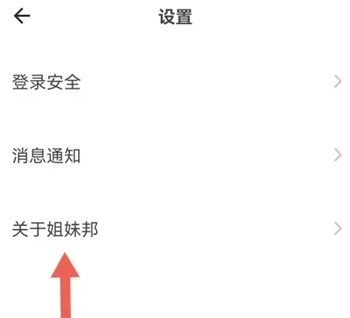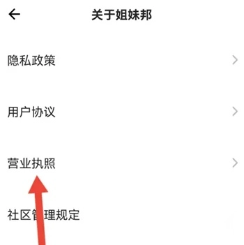 2、打开设置,点击【关于姐妹邦】,接着点击【营业执照】。