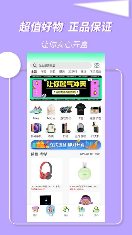 万物盒汇聚海量潮流热门商品,覆盖数码、网红食品、品牌电器、潮玩手办,还有各类美妆、香水等,让你足不出户就能体验盲盒的乐趣,开出快乐与惊喜!