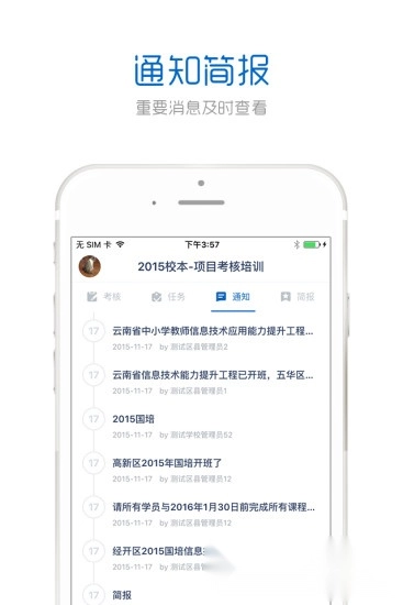 2、消息:实时查看培训通知和简报内容,重要信息一手掌握。