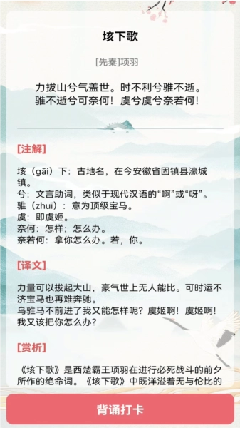 互动性强:除了阅读功能外,还设有诗词闯关等趣味环节,并融入历史小知识,以此提升学习的趣味性。