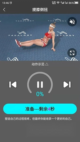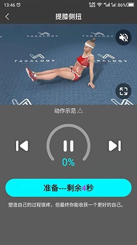 2、能够随时暂停播放,休息时暂停,待准备好后继续观看训练内容。