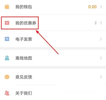1、在“我的”个人信息设置页面里能找到“我的优惠券”功能,点击该功能即可进入。