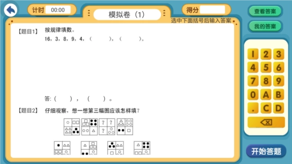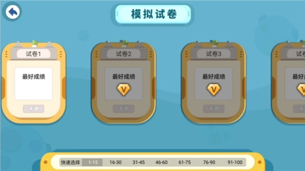 “模拟考场”里的试卷是针对当前年级的模拟卷,能支持在线答题,还可以自动批卷并给出分数。