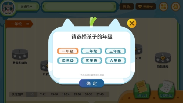 首先登录葱喵儿奥数后,在主界面需要先选择孩子学习的年级。
