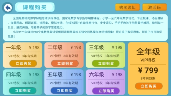 部分课程需开通VIP才能学习,而开通VIP的操作权限在家长手中。为防止孩子误操作,家长需要先完成一道简单的数学题验证。