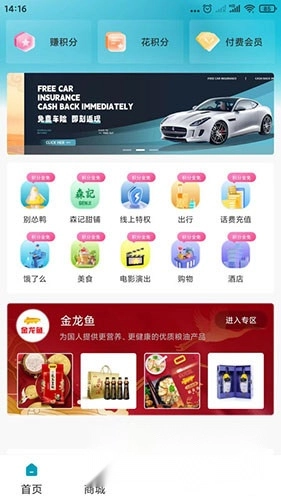 3、随时随地都能购物,通过一站式的便捷方式快速赚取积分,使用积分可以兑换更多礼物,还有超多美食可供选择。