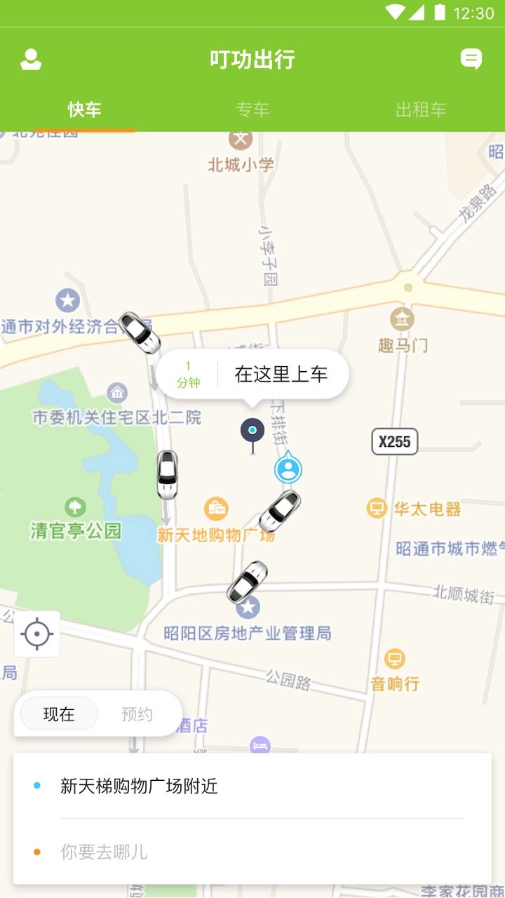 1.打开叮功出行,点击首页上方【快车】功能按钮。