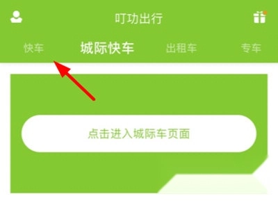 1.打开叮功出行应用,点击界面顶部的【城际快车】功能选项。
