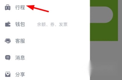 2.在新的功能菜单页面中,点击【行程】按钮。