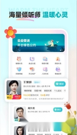 云朵倾诉是宇音数康科技有限公司推出的一款聚焦心理服务的应用。平台汇聚了专业心理医师与倾诉师,随时在线倾听用户的心声,助力解决各类心理困扰。该软件支持匿名交流,用户无需顾虑身份暴露,能够尽情释放压力、舒缓身心。此外,软件还提供丰富的心理相关文章与音频资源,帮助用户学习实用的心理知识与调节技巧。有需求的用户,欢迎体验使用!
