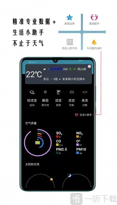1.精准的天气预报,便于了解日常天气变动,涵盖温度、风向、天气状况、气压、空气质量、湿度以及PM2.5等信息;