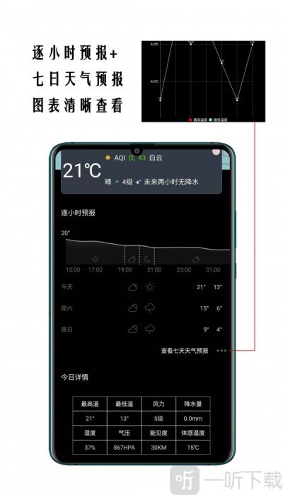 2. 这款应用程序专注于提供精准的天气信息,可支持全球230个国家和地区的天气查询,还能提供未来7天的详细天气预报。