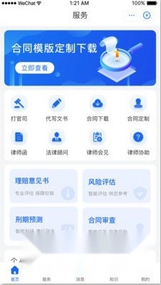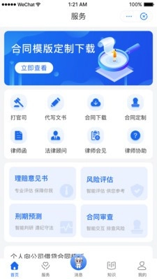 4.获取专项服务:平台覆盖刑事诉讼、民事诉讼、房屋纠纷、劳动仲裁、知识产权、法律文书、合同纠纷、企业顾问、交通事故、婚姻家庭、债权债务、遗产继承等多种法律服务场景。