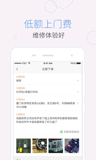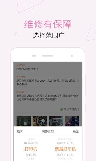 “叫我修吧”是厦门昂讯网络科技有限公司打造的装修维修服务平台,这款基于LBS地理位置技术开发的软件,可协助用户处理办公设备(OA)和电脑网络产品(IT)的相关维修需求。