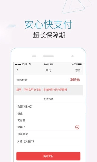维修费用支付至平台,平台提供长达15天的保障期,期间支持申诉与返修服务,以确保维修质量达标。