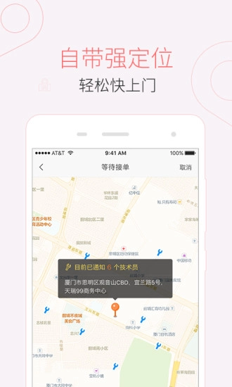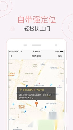 不再多费口舌告知地点,技术员可借助平台自带的定位功能,轻松定位并上门服务。