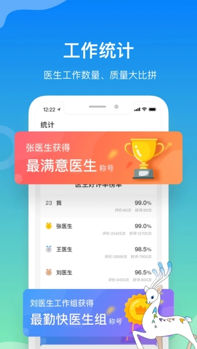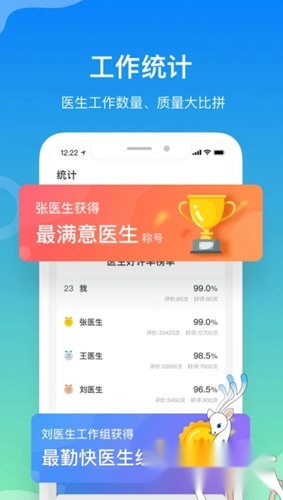 服务统计排行榜:医生与工作组投身服务好评较量,角逐“最满意医生”荣誉头衔。