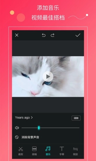 【音乐搭配】快视频支持为你拍摄的小视频剪辑并添加背景音乐,让你的微电影更动听。