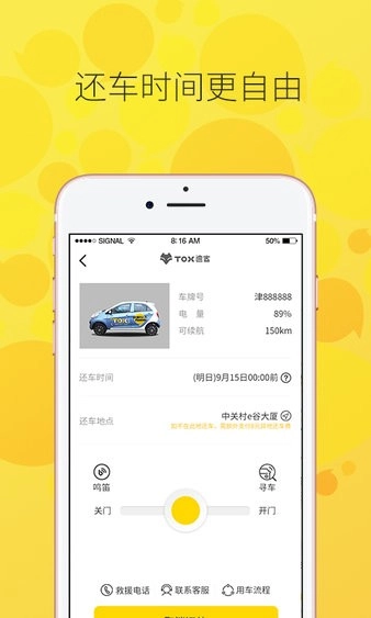 实现用户从查车、租车、用车、控车到还车的全流程自主化操作。