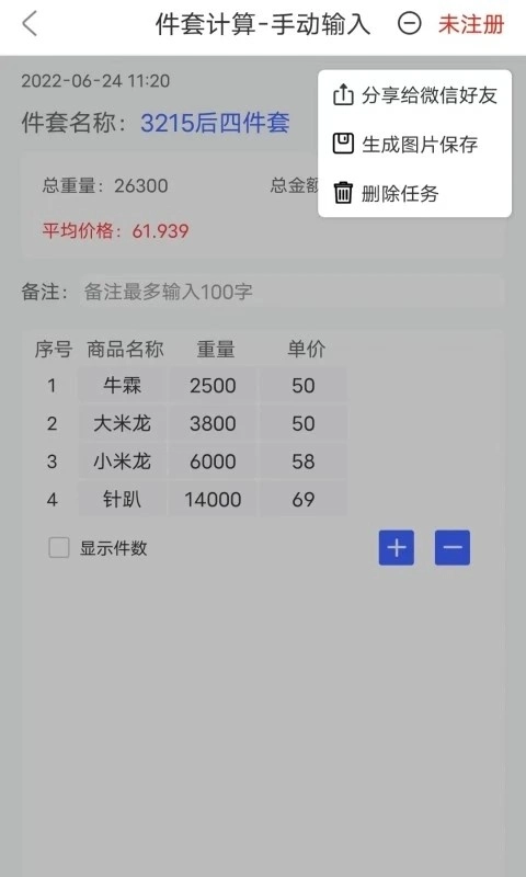 3、简单方便的功能,让你快速进行件套报盘计算。