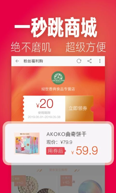 购买商品前直接搜索对应的优惠券,快速领取并使用,以此节省开支。