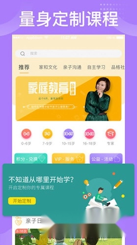 提供0-6岁、7-9岁、10-15岁、16-18岁各年龄段的家庭教育课程,可供自由选择。