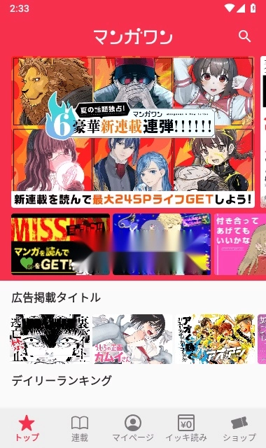 1、MangaOne每天都会对排行榜进行更新,让用户了解到更多的优质漫画内容。