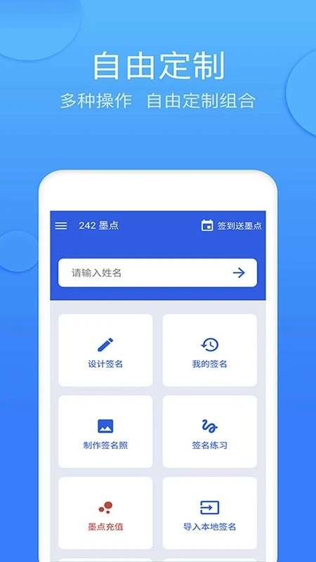 用户可以根据自身需求设置更具趣味性的签名,展现独特个性;拥有一款个性签名,能让好友们对您另眼相看,而且签名由您亲自设计,完全能满足您的签名需求;设计的签名支持动画效果展示,方便您随时在线临摹,短时间内就能学会属于自己的艺术签名;墨签艺术签名,为您打造专属签名!