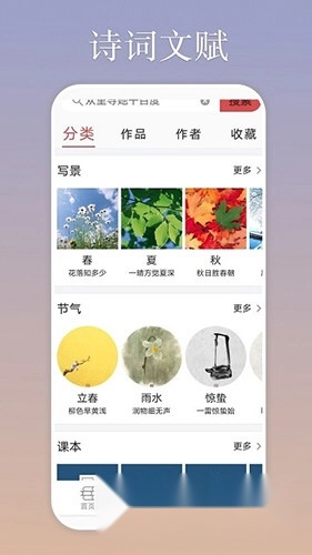 5、支持按作者、朝代、主题等多种维度分类浏览诗词,方便用户学习与掌握相关内容。